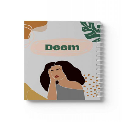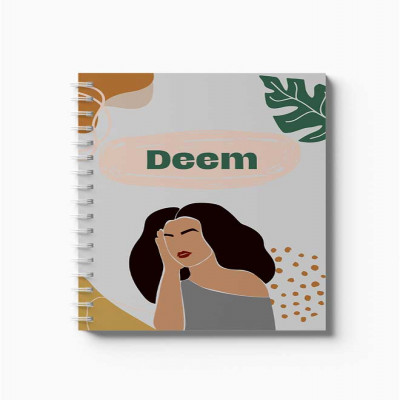 دفتر سلك حلزوني ٦٠ ورقة مقاس A5، لتسجيل الملاحظات وتدوين التذكيرات، بغلاف من الورق المقوى بتصميم اسم ديم بالإنجليزية